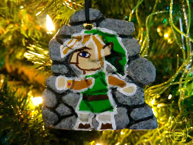 Place your cutout Link onto your ornament and trace the outline onto the rocks. This is just to give you a bit of a guideline and help you with the rest of the line placement. With some white paint, paint the outline of Link, use the template as reference.